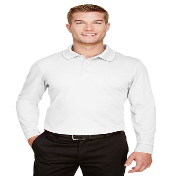 Fabric: 5 oz./yd2 / 172 gsm, 100% polyester face plaited to 60% polyester, 40% cotton back (total overall garment 61% polyester, 39% cotton). Proprietary dual-sided mesh pique knit constructed of fine denier wicking polyester on the outside and soft-as-cotton wicking blend on the inside. Moisture-wicking performance with UV 15-39 protection. Feature: Matching flat knit collar. Side vents. Luxury, comfort and performance in one. Dyed-to-match 3 button placket.