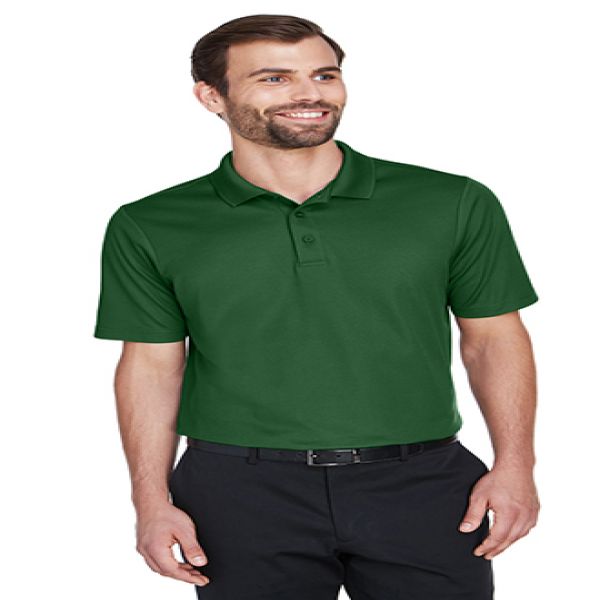 Fabric: 5 oz./yd2 / 172 gsm, 100% polyester face plaited to 60% polyester, 40% cotton back (total overall garment 61% polyester, 39% cotton). Proprietary dual-sided mesh pique knit constructed of fine denier wicking polyester on the outside and soft-as-cotton wicking blend on the inside. Moisture-wicking performance with UV 15-39 protection. Feature: Matching flat knit collar. Luxury, comfort and performance in one. Three-button placket. Dyed-to-match buttons.