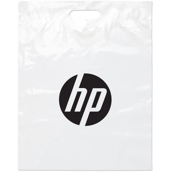 This low-density 2.5 mil plastic bag is a perennial customer favorite for good reason: simplicity, functionality, and durability. It features fold-over reinforced die cut handles and a bottom gusset. USA made. Price includes one color, one location imprint.
