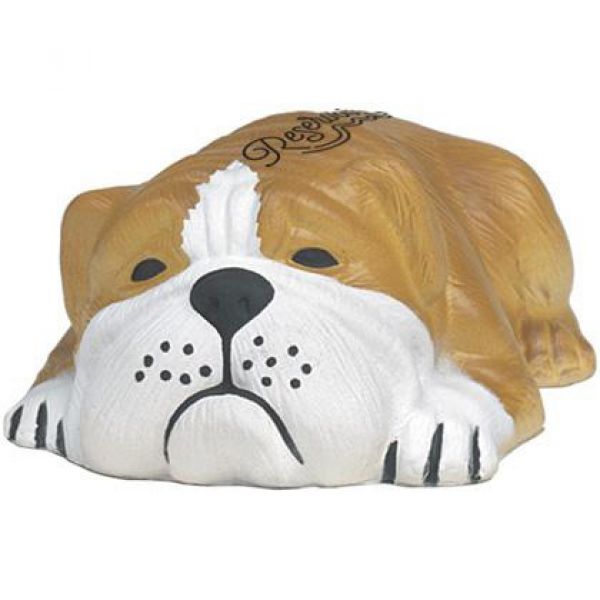 Custom stress ball - 1.5"x 5"- 0.1 lbs - in brown colour. With a shape of a dog lying down. Imprint dimensions: 0.75" x 0.5". Price includes one colour imprint. Free art proof will be emailed with every order within one business day. A minimum of 150 personalized stress balls in 7 days of production. No duties, no fees!