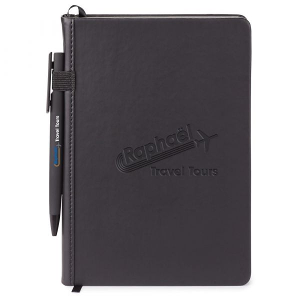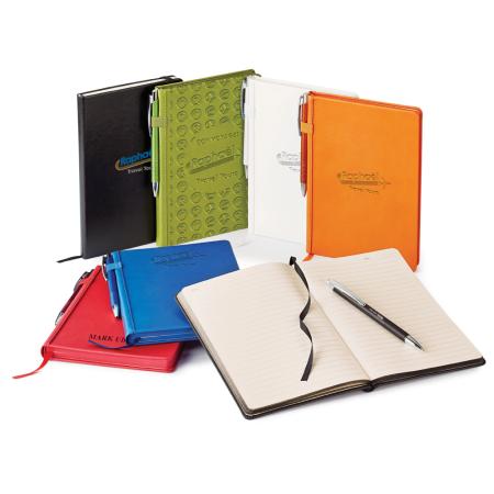 Model: ST4361 Donald Hard Cover Journal Combo Product Description Standard: Bulk. Standard medium point blue ink refill. Combo includes ST4360 vinyl journal with 192 ivory lined, perforated pages (non-refillable) and a matching G1254 Donald clip-action ballpoint plastic pen. Price includes debossing. Size: 8.25"h x 5.75"w Imprint Area: 2"h x 3.5"w Request A Virtual Proof Select Colour Blue Black Green White Red Orange Choose Quantity View Price Breaks Quantity Price 50 $12.24 100 $11.48 250 $10.71 500 $10.33 1000 $9.95 Enter quantity or drag slider. Minimum quantity is 50. Quantity: Price Each $12.24 Setup Charge: $120.00 Subtotal $732.00 Savings: $ over minimum qty pricing Choose Your Quantity Quantity Price 50 $12.24 100 $11.48 250 $10.71 500 $10.33 1000 $9.95 Standard Production Time: 5 business days Select Delivery Date Enter Postal Code Apply Loading... Choose a Shipping Method -- Loading Shipping Prices -- Customize it! Upload Your Art Now Or Send it Later. Select Imprint Colour(s) Back to Edit Product Color And Quantity Where on the item should we print your design? 3.5" x 2" Available print design areas 3.5" x 2" Product Color: Select product color Quantity: 50 Add Your Artwork Add Artwork Add Now Send After Checkout Don’t have artwork? That’s ok! Artwork is not required to start a job. Simply skip this step and email us artwork later (info@rushimprint.ca). If you need assistance with your art, our designers can help with that too! Will I be able to approve my design before it goes into print? Yes! You will receive a digital mock-up of your artwork on this item within a few hours of placing your order. We will send your order into production only after you approve the mock-up. Only Image Aa Only Text Aa Text/Image Contact Us Enter Your Text Choose file Uploading logo. Please wait... Personalize your design by adding text and customizing its shape with a curve. Upload your logo to give it a professional touch, and combine these elements to create a one-of-a-kind design that’s uniquely yours. Open Product Designer Don’t have artwork? That’s ok! Artwork is not required to start a job. Simply skip this step and email us artwork later. If you need assistance with your art, our designers can help with that too! Will I be able to approve my design before it goes into print? Yes! You will receive a digital mock-up of your artwork on this item within a few hours of placing your order. We will send your order into production only after you approve the mock-up. Free art proof will be emailed with every order within one business day Total (loading...) qty x Set Up Shipping Cost Rush Charge Custom Fields Hazmat Fee Estimate arrival Savings Add to Cart Updating Price...