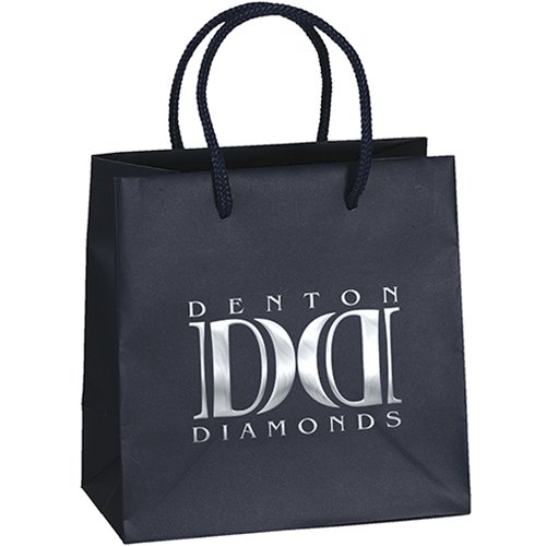 Achieve a refined high-end look for your gift packaging, thanks to the subtle finish on our 157 GSM premium-weight matte-laminated bags. Includes matching macramé handles, reinforced fold-over top, and cardboard bottom insert. Price includes foil stamp.