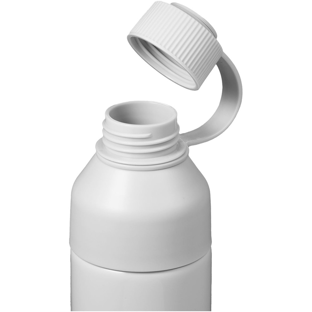 The DUO 26oz Sports Bottle features single-wall, 100% recycled aluminum construction with a unique double-opening lid design. The bottom of the lid screws the entire lid off the bottle, which is perfect for adding ice, easy filling and effortless cleaning. The smaller top-opening allows for easy swigging, screws tight for a leak-proof seal, and has a built-in handling loop for easy-carry convenience.. Features. Single-wall, 100% recycled aluminum constructionEntire lid screws off for adding ice, easy filling and effortless cleaningTop-opening allows for easy swigging, screws tight for a leak-proof sealBuilt-in handling loop for easy-carry convenience. Price includes one colour, one location imprint.