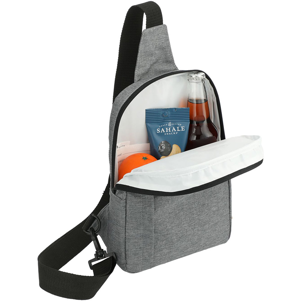 Made from RPET, the Essentials Recycled Insulated Sling offers style and convenience. Main zippered compartment is insulated for temperature-sensitive items. This sling also features a zippered front pocket and adjustable crossbody strap. Through a partnership with 1% For The Planet, one percent of sales of all EcoSmart products are donated to environmental nonprofits.