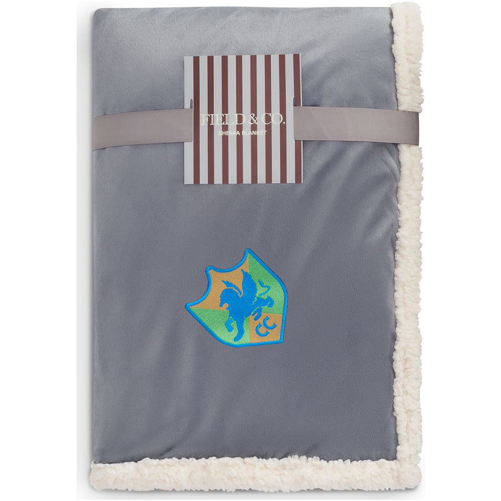 The Field & Co. Cambridge Oversized Sherpa Blanket combines a classic look with unbelievable comfort. Premium Sherpa fleece delivers a super-soft feel that keeps you cozy all day long. Features soft velour on one side and sherpa backing on the other, plus Field & Co. vintage branding elements and details. Blanket measures 72'' x 60'' unfolded and 20'' x 13'' folded. Free decoration: Run charges waived for embroidery up to 10,000 stitches. This blanket is spot clean only. Price includes embroidery.