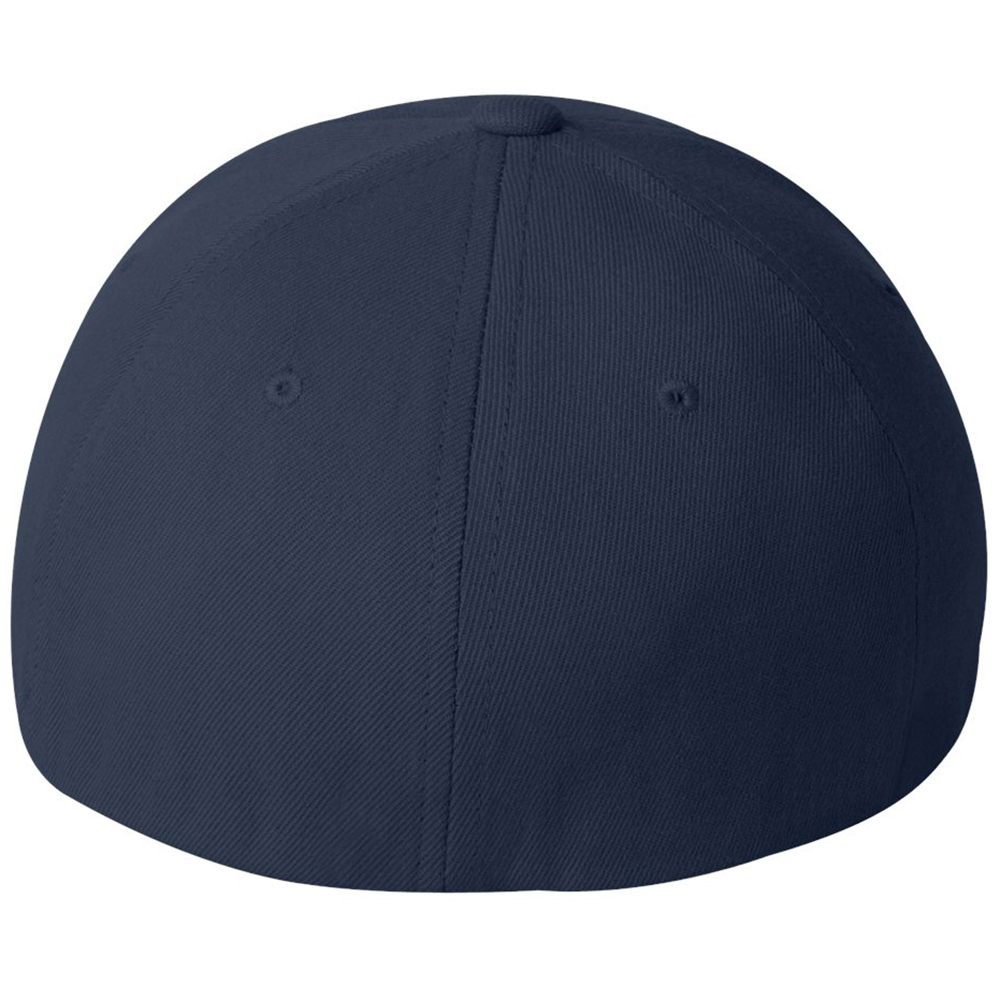 Fabric: 83% acrylic, 15% wool, 2% spandex. Feature: 6-panel, structured, mid-profile. eight-row stitching on bill. 3 1/2" crown. hard buckram backed front panels. sewn eyelets. spandex sweatband retains shape; Silver underbill. Price includes embroidery.