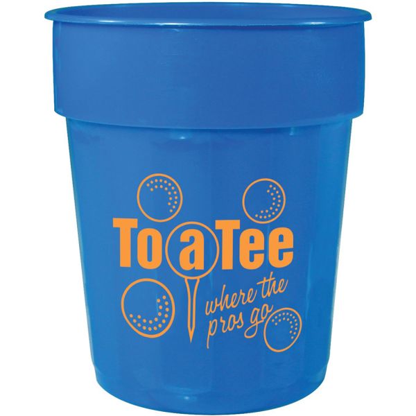 The Fluted Stadium Cup is a reusable cup that holds 16 ounces of your favorite beverage. Its fluted sides and stackable design save space on the giveaway table and in the kitchen. This cup is a great souvenir that will be used over and over, and loved for years to come. The 16oz Fluted Stadium Cup is BPA-free. Hand wash only. Made with 25% recycled polypropylene material. Features. Stackable, space-saving design. Fluted sides. BPA-free. 16oz Capacity. Price includes one colour, one location imprint.