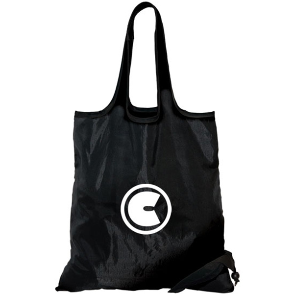 Lightweight 190T Polyester. Practical and easy to carry. Folds into its own little pouch with elastic closure and plastic stopper. Keep handy to reuse over and over again. If you choose to print on the pouch your logo will be seen if the bag is open or closed. A practical shopping tote! Bags shipped open, not folded.