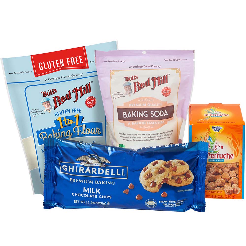La perruche brown sugar cubes 8.8 oz box. Ghirardelli milk chocolate baking chips 11.5 oz bag. Bob’s red mill gluten free 1 to 1 baking flour 22 oz pouch. Bob’s red mill baking soda 16 oz pouch. Price includes full color imprint.