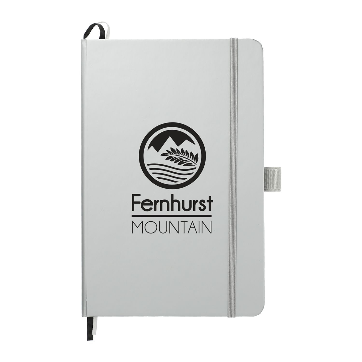 The 5.5" x 8.5" FSC Mix Bound JournalBook® features a FSC®-certified paper hard cover with 80 sheets of white FSC®-certified, soy-based ink lined paper. Includes color-matching elastic closure, pen loop and ribbon page marker. Through a partnership with 1% For The Planet, one percent of sales of all EcoSmart® products are donated to environmental nonprofits.