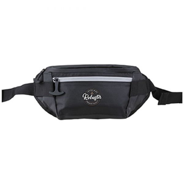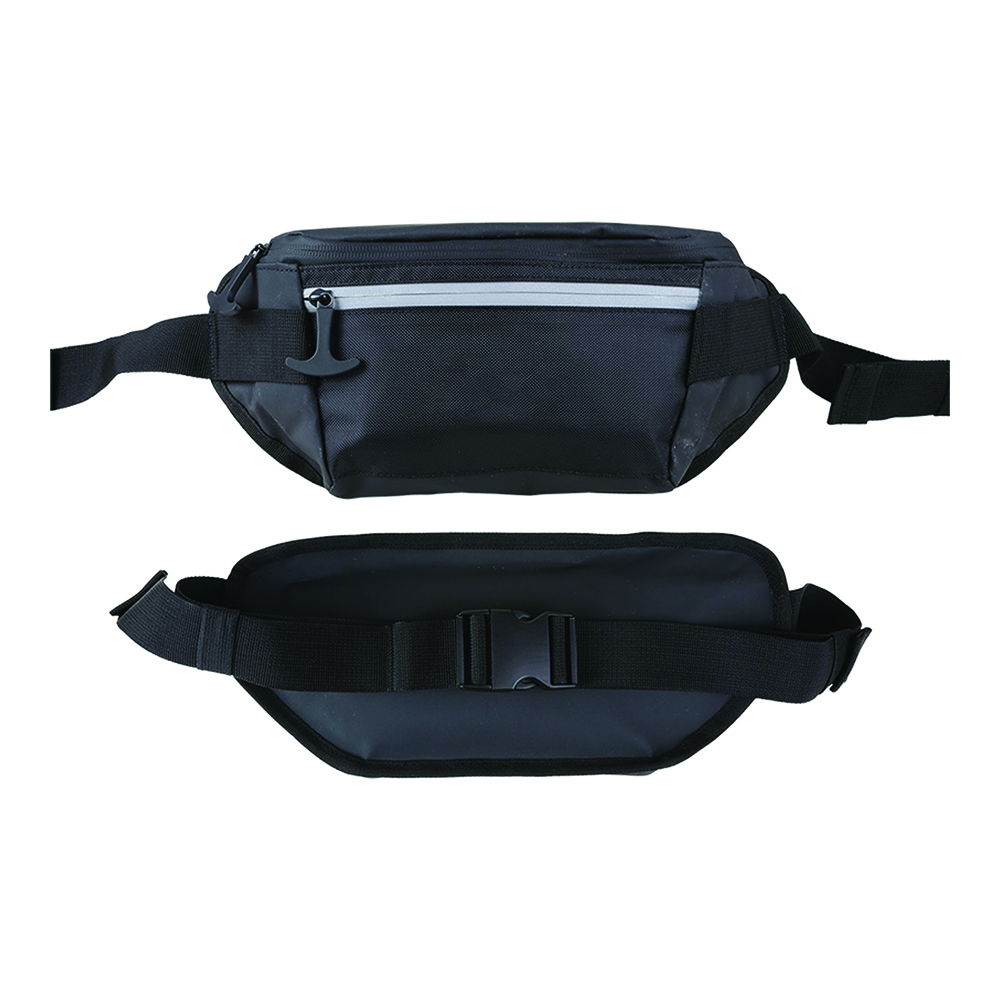 0.55mm Tarpaulin body material and Polyester 840D/PVC pocket material. This waist pack is the new go-to for everyday essentials. 1.5L waist pack made from water resistant tarpaulin material. Single main zipper compartment. Front zipper pocket with silver reflective tape. All zippers are water resistant. Adjustable waist strap with buckle. Perfectly sized to fit your phone, keys, wallet, or any other accessories on day trips to the city or hikes along the bay. Bulk packed. Price includes one colour, one location imprint.