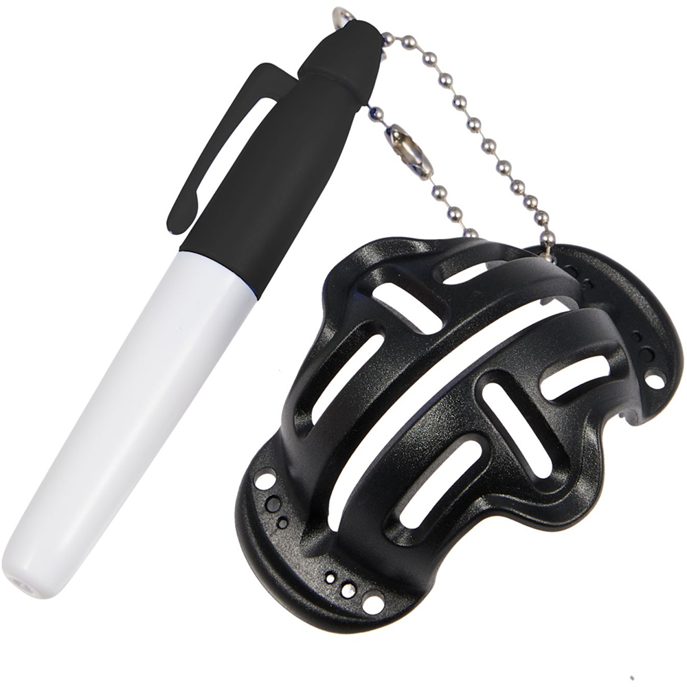 Perfect for group play, the Recycled Ball Stencil with Marker allows you to create perfectly straight lines and personalized markings on your golf ball, helping you easily distinguish it from others. It's also a useful tool for putt alignment, helping you line up each shot with precision. Small enough to fit in your pocket, it includes a ball link for attaching to your golf bag or belt loop. One percent of sales of each purchase of this tool supports environmental nonprofits through a partnership with 1% For The Planet. Features: Straight-line stencil - create clear, straight lines for easy putt alignment. Personalization - mark your ball to ensure it stands out in group play. Ball link attachment - clip onto your golf bag or belt loop for easy access. Permanent marker included - provides lasting markings on your golf ball. Compact design - small enough to fit in your pocket for on-the-go use.