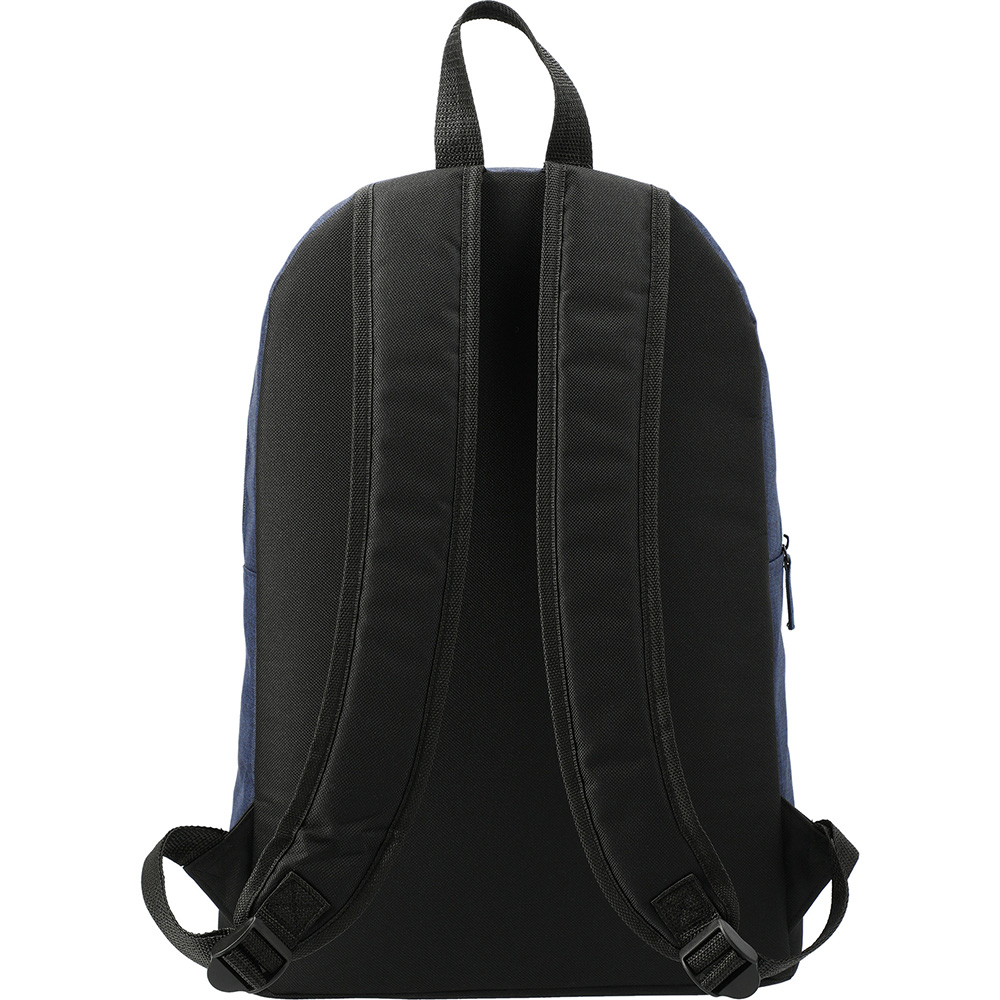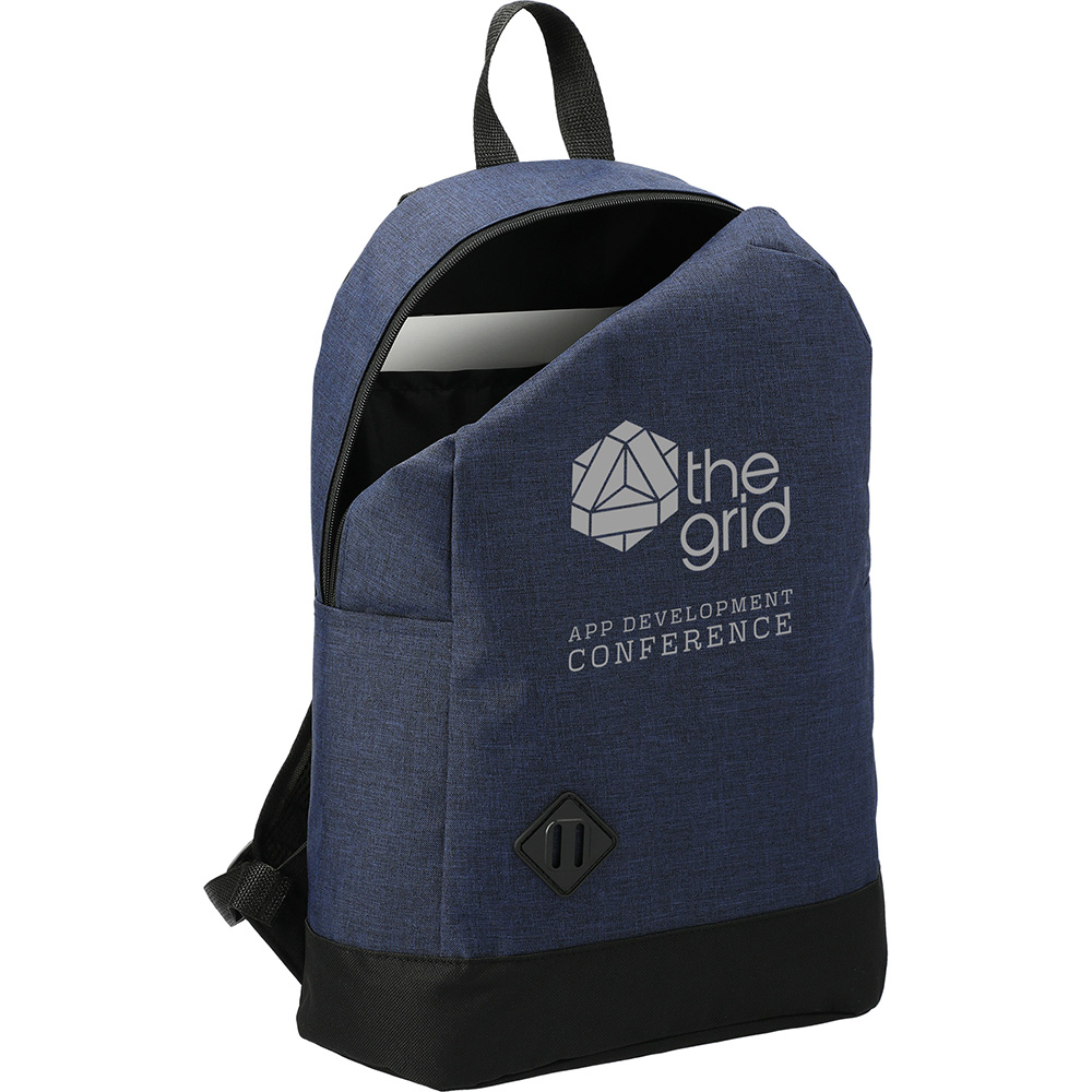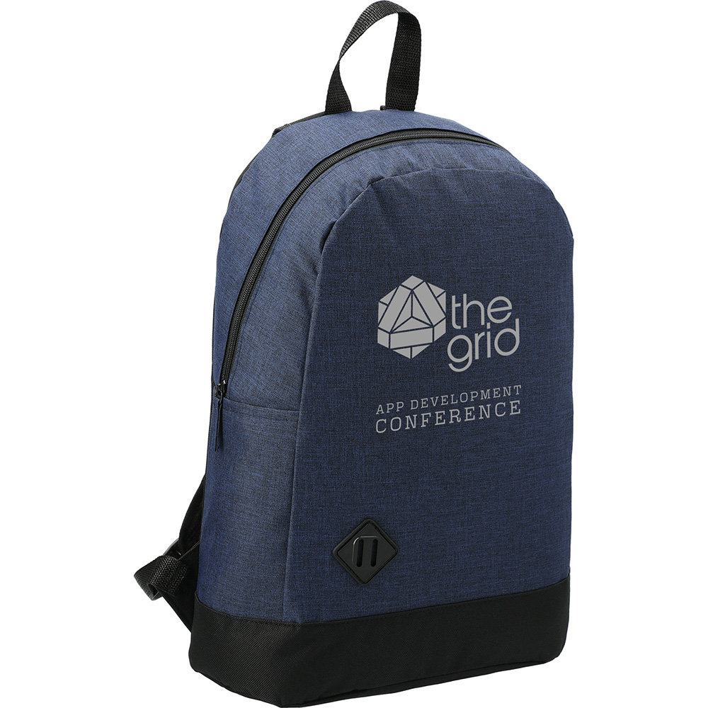 The Graphite Dome 15" Computer Backpack has a zippered main compartment that contains a 15 inch laptop sleeve. Featuring a lash tab accent on front plus padded shoulder straps and grab handle it makes for a stylish carry option on the go. Disclaimer: There may be minor variations in color of the actual product due to the nature of the fabric dyes weaves and printing. Material: 600d Polycanvas. Price includes one color, one location imprint.