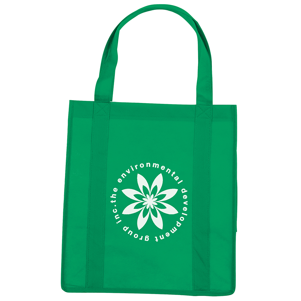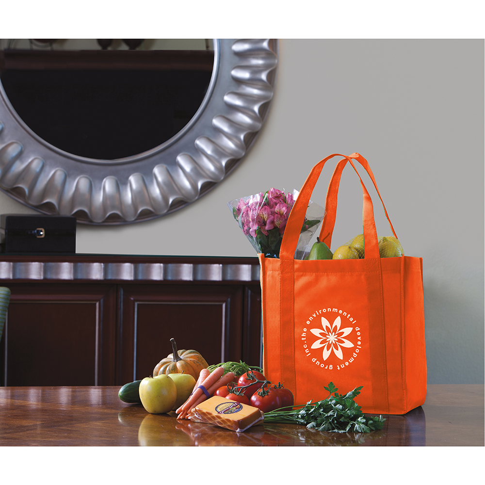 Reusable. The perfect tote for a quick trip to the market. Reinforced bottom panel. Reusable. Non-Woven Polypropylene. Price includes one colour, one location imprint.