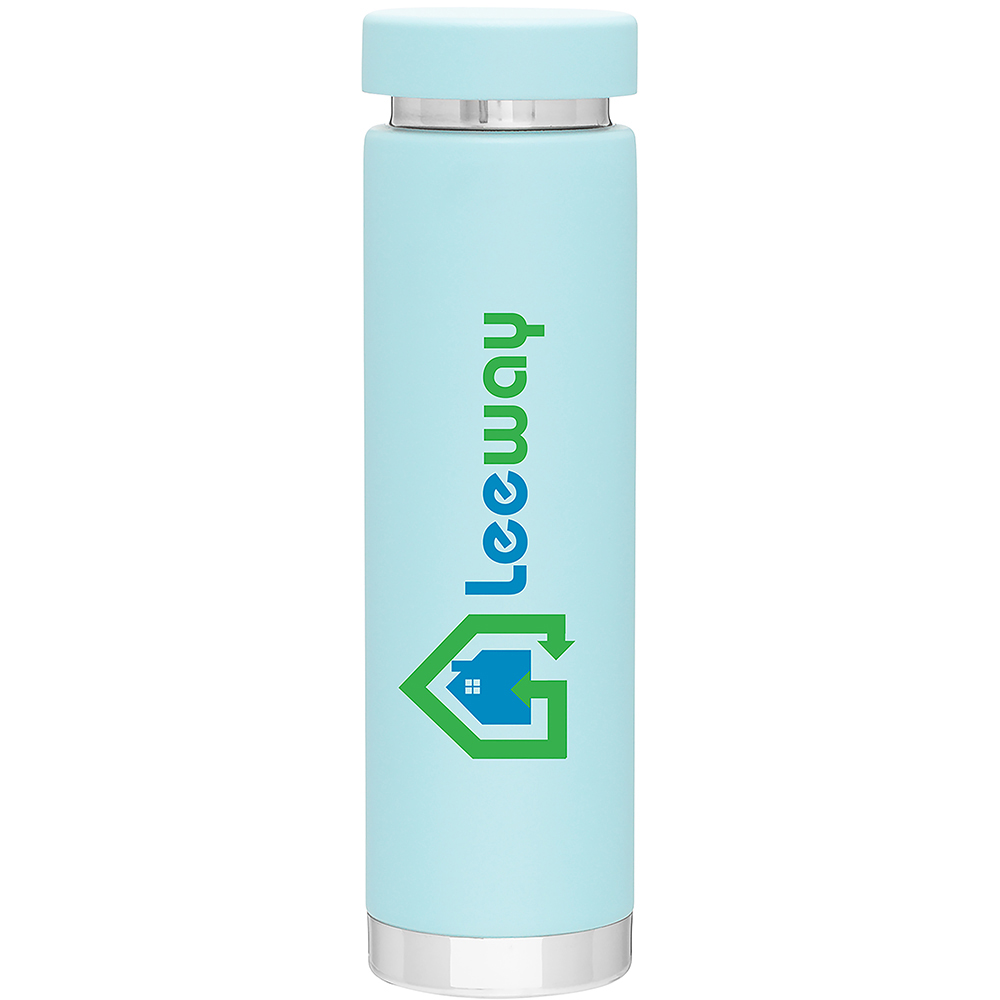 16.9 oz double wall 18/8 stainless steel thermal bottle with copper vacuum insulation, threaded insulated stainless steel lid, high polish rim and base, and powder coated finish · plastic-free threading - gift box included. Price includes one colour, one location imprint.