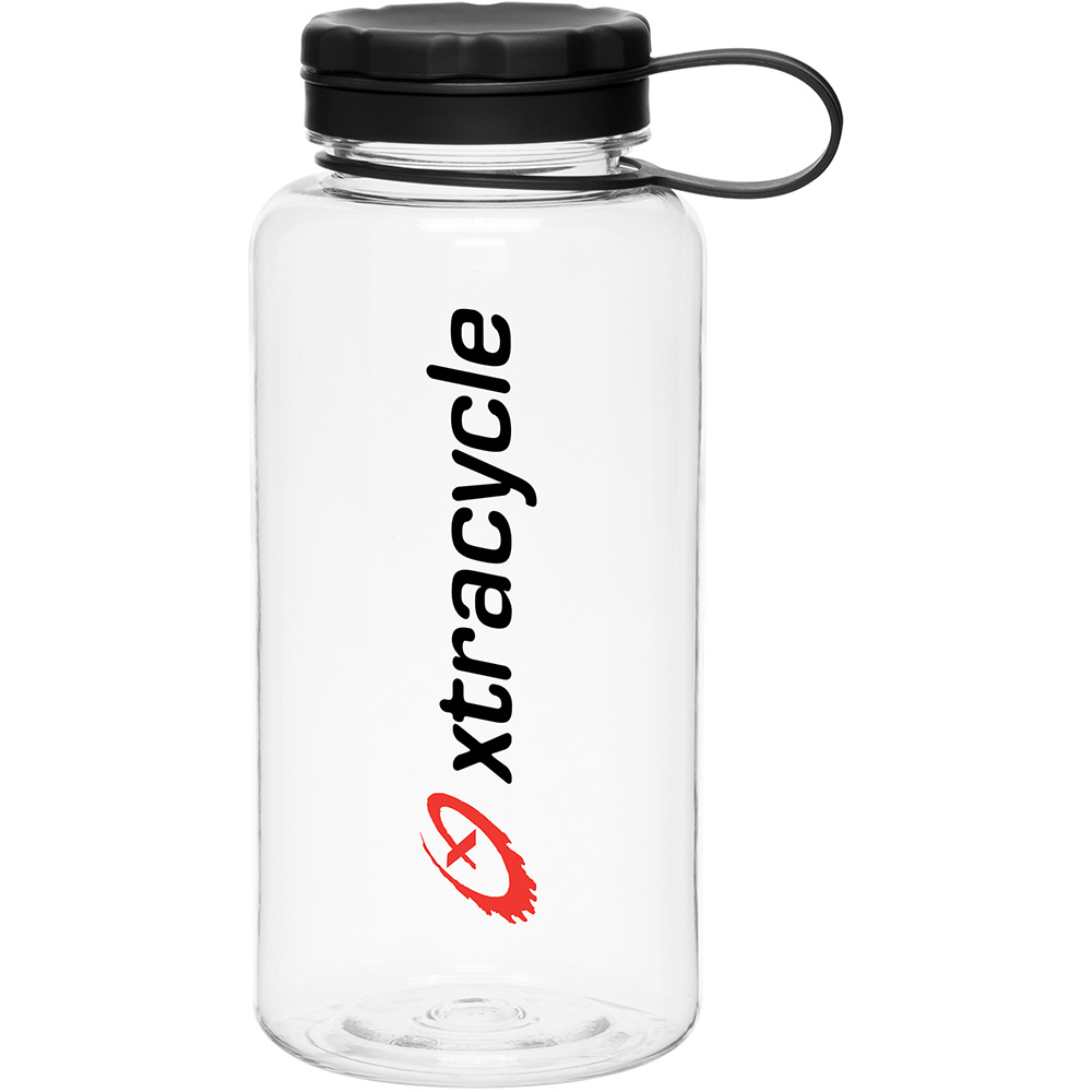 34 oz single wall [BPA-free] Eastman Tritan copolyester bottle with threaded lid and carrying handle. Price includes one color, one location imprint.