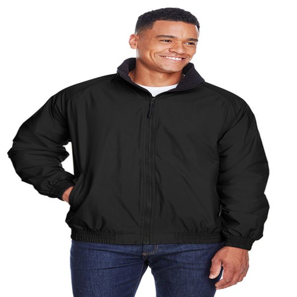 Fabric: 100% nylon taslon shell with anti-pill microfleece lining. Wind- and water-resistant. Polyester raglan sleeve lining. Feature: Full front-zip with inside zip guard. InconspicuZip for easy embroidery. Contrast tipped mock collar (except Black). Outside zip pockets. Deco Eligible. Price includes embroidery.