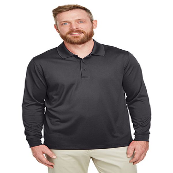 Fabric: 6.5 oz./yd2 / 225 gsm. 100% polyester Snag Protection Plus jersey. Moisture-wicking and anti-microbial. UV 15-39 protection. Feature: Matching knit collar and cuffs. Three-button placket with dyed-to-match buttons. Side vents. Industrial Laundry Tested to 75 washes.