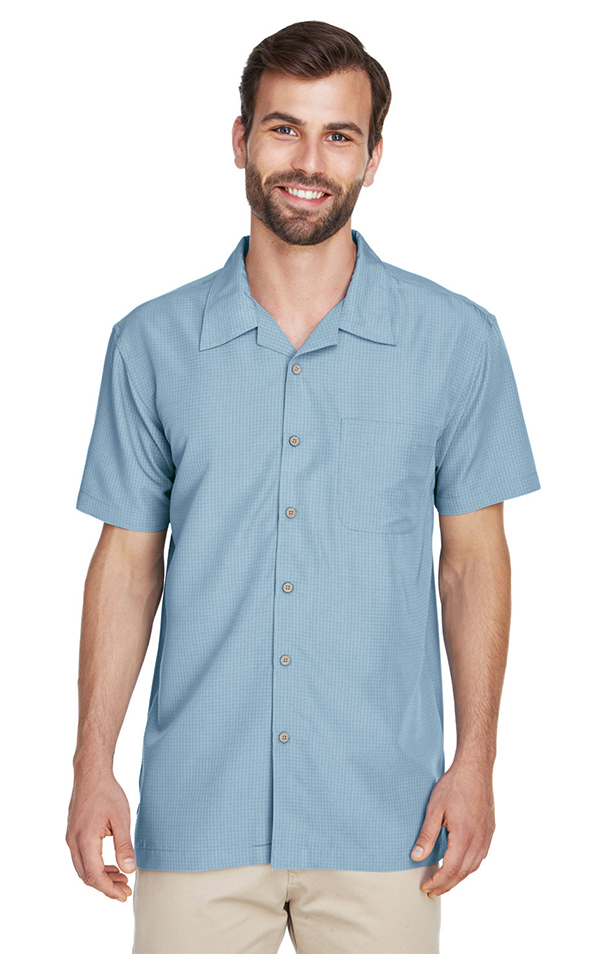 Fabric: 4.7 oz/yd2 / 160 gsm, 70% rayon, 30% polyester polynosic. Wrinkle-resistant. Sand washed for softness. Feature: Short-sleeve camp shirt with special shadow weave. Full-button front. Synthetic coconut shell buttons. Replacement buttons. Side vents. Left-chest pocket. Deco Eligible. Port Authority Long Sleeve Easy Care Shirt.