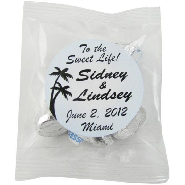 1oz. Hershey's Chocolate Kisses (R) Goody Bag. Perfect for parades, trade shows or any event where you want to give an inexpensive, colorful and delicious treat.