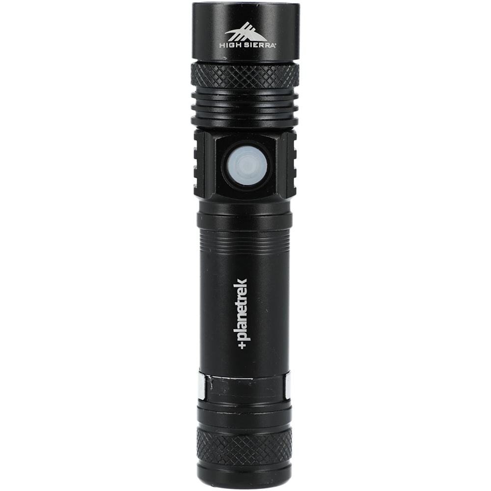 Elevate your eco-consciousness with the High Sierra 160 Lumen Rechargeable Recycled Flashlight. Crafted from recycled aluminum, this environmentally friendly 160 lumen flashlight boasts a micro-USB port and includes a handy 7.78" charging cable, complete with a convenient side clip for easy carrying. Versatility is at your fingertips with three light modes: high, low, and flashing. You'll appreciate its efficient 3.5-hour charging time, delivering up to 3 hours of dependable light when you need it most. This eco-champion arrives packaged in an FSC certified natural gift box, and comes with user-friendly instructions for hassle-free operation. Make the sustainable choice without compromising on performance - this remarkable flashlight has it all. 160 lumen, rechargable flashlight. Crafted from recycled aluminum. 3 light modes: high, low, and flashing. Side Clip. Micro USB port. FSC-Certified gift box. Price includes laser engraving.