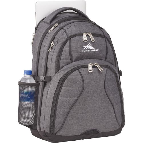 The High Sierra Swerve 17" Computer Backpack has a padded interior computer sleeve (holds a 17" laptop) with an easy back-access zipper. It features an organizer compartment with multiple pockets, a zippered mesh pocket with a key fob and a handy media player pocket plus a valuables pocket for a smartphone. Side mesh water bottle pockets. S-shaped Vapel mesh Airflow padded shoulder straps offer a comfortable suspension system, thumb-ring pulls and a cell phone pocket. A Vapel mesh grab handle and padded back features a tuck-away waist belt. Includes lifetime warranty. MATERIAL: 600d PolyCanvas. Price includes one color, one location imprint.