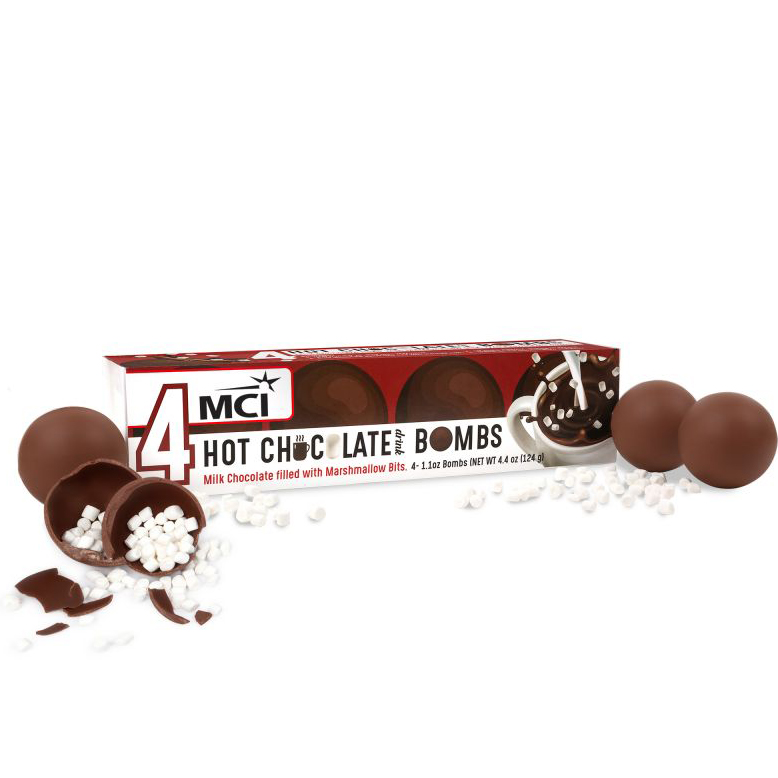 EXCLUSIVE TO CHOCOLATE INN! Get in on the hottest item of the season! Our BRAND NEW Hot Chocolate Bomb is not only delicious but an amazing food experience! Now in a 4 pack! Share or save some for later! Filled with delicious marshmallows, simply place the chocolate bomb into your mug, pour 6-8 oz of hot milk over it and watch the bomb unravel before your eyes! Fast and easy, this hot cocoa recipe is sure to make a cold winter's day much better. Price includes full colour imprint.