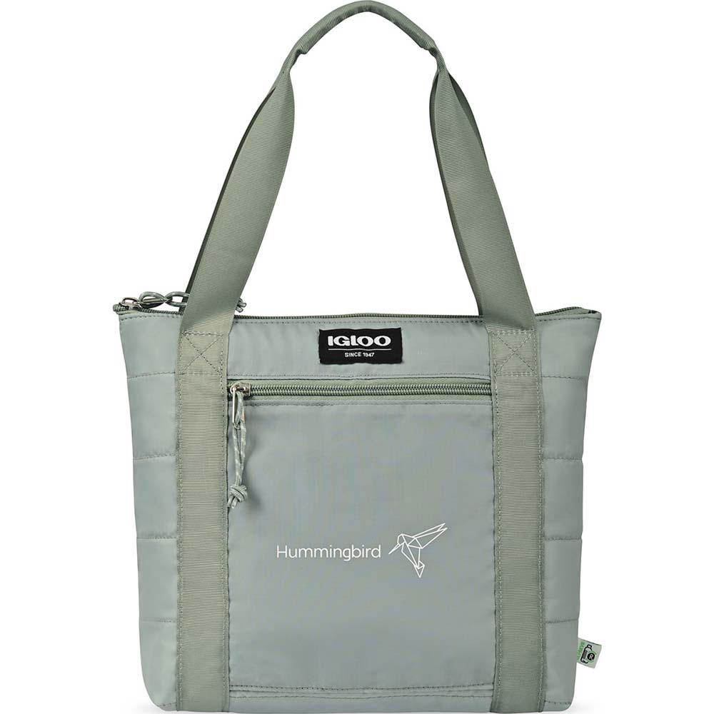Featuring recycled materials and a convenient packable feature, this roomy Igloo cooler is the perfect size for the office or lunch in the park. REPREVE performance fiber exterior material made from recycled post-consumer plastic bottles. Primaloft Gold insulation made from 100% post-consumer recycled fibers. Tear-resistant ripstop exterior for enhanced durability. Liner is leak-resistant, antimicrobial & easy to wipe clean. When bag is unfolded, the front zip pocket stores small accessories. Cord zipper pull on main compartment & front pocket for easy opening/closing. Carabiner included for easy attachment to other items. Cooler easily packs fully into the front zip pocket for maximum space saving. Holds 10 cans. PVC free. Provides up to 8 hours of ice retention. Price includes one colour, one location imprint.