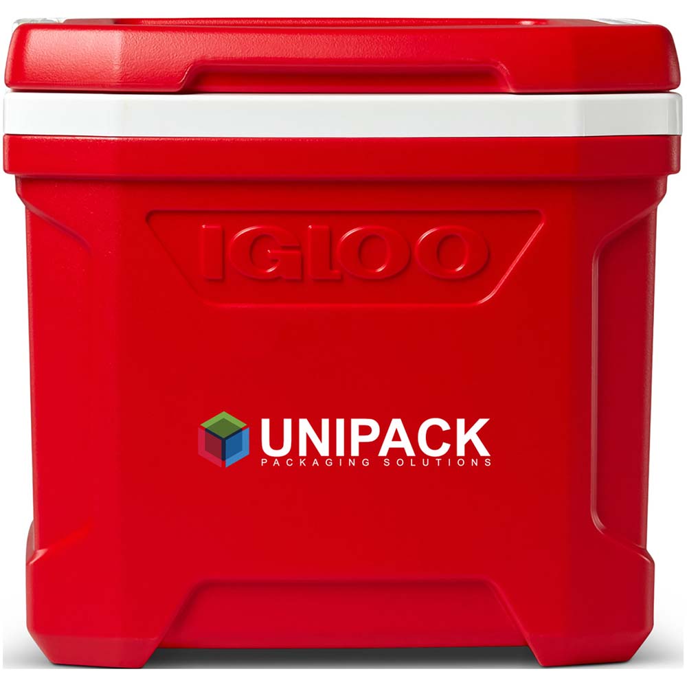 The Igloo Profile 16 Qt. Cooler is perfectly sized, budget-friendly, and lightweight for day trips and outings. Convenient bail handle folds flat into liner for easy stacking and storage. Cool Riser Technology improves cooling performance. Integrated pouring channel in liner allows for easy purging of melted ice. Vertical profile fits tall and longneck bottles. Features innovative and proprietary THERMECOOL Foam. THERMECOOL is over 50 times better for the environment than traditional foam insulation. Up to 3 days of ice retention. 16 Qt. capacity / Holds 24 cans. Price includes full colour imprint.