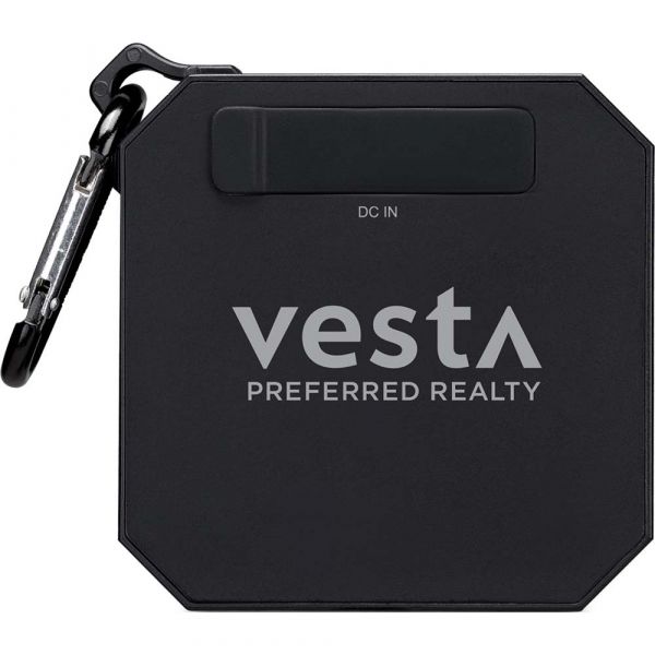 Bluetooth wireless allows straightforward wireless pairing of Bluetooth enabled devices. Supports Bluetooth v5.1. IPX4 water resistant. Super magnet on the back that will attach to most metal surfaces. Shock absorbing cover. Built-in rechargeable battery - up to 10 hours of playtime. Micro-USB port for battery recharge. Includes: detachable carabiner, USB charging cable. Gift box dimensions: 4.38"L x 1.56"W x 7"H. Price includes one colour, one location imprint.