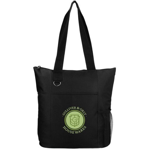 The Infinity Convention Tote has a zippered main compartment with a 11.5" handle drop. It additionally features an open front pocket key ring and a side mesh pocket. Bottom piping has been removed. Material: 600d PolyCanvas.