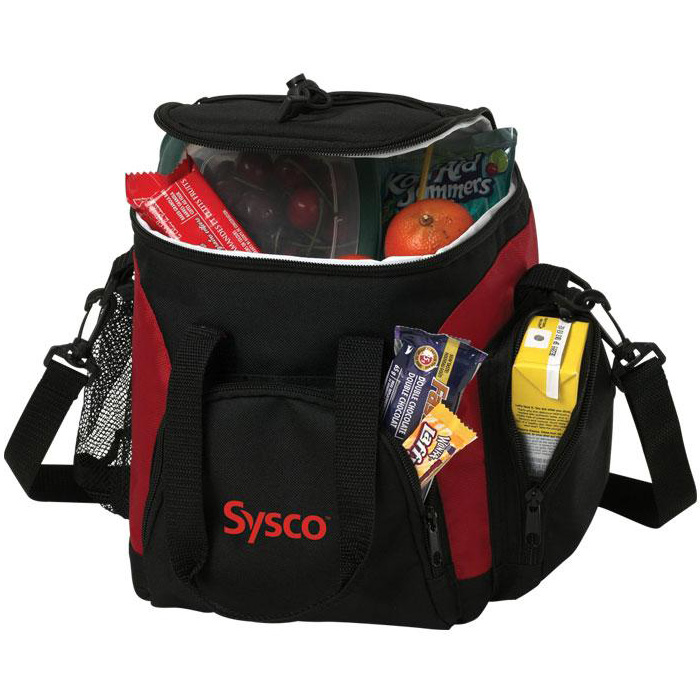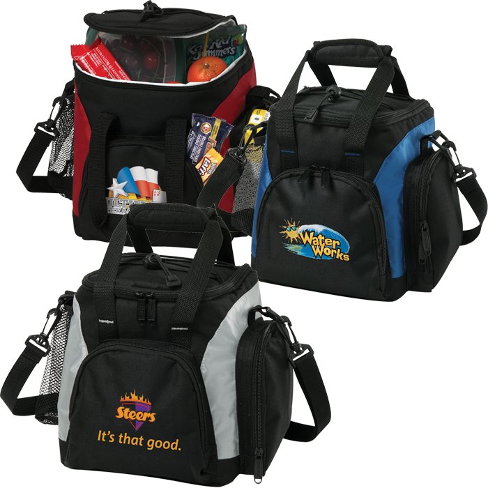 A cooler bag is the better alternative to a plastic cooler. This cooler has foam insulated heat sealed liner. Constructed of 420D nylon/dobby and 600D polyester. Front and side zippered pockets and a mesh pocket to provide extra storage while the shock cord and removable/adjustable shoulder strap adds convenience. Product dimensions: 9" x 9" x 8" - 0.78 lb. Price includes 1 colour imprint, one location. Imprint dimensions: 3" x 3". Free art proof will be emailed with every order within one business day. Minimum order of only 25 custom cooler bags ready in a 3-day production! No duties, no fees. 3 colours to choose from.