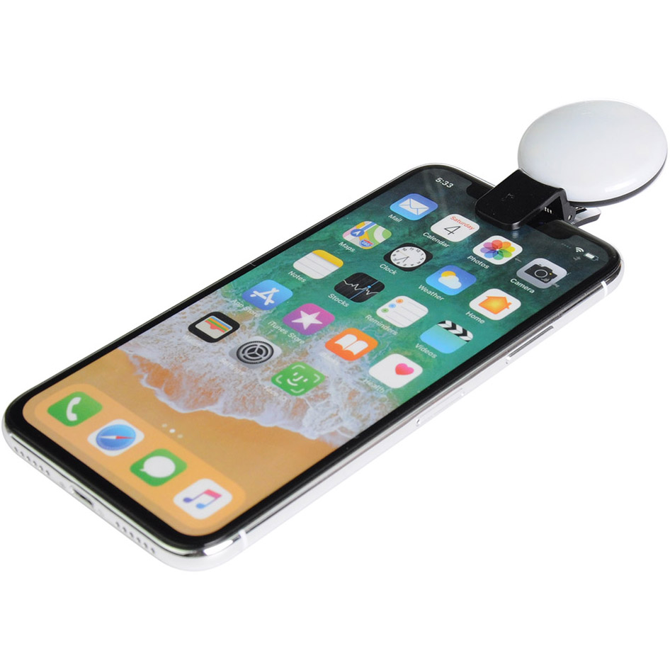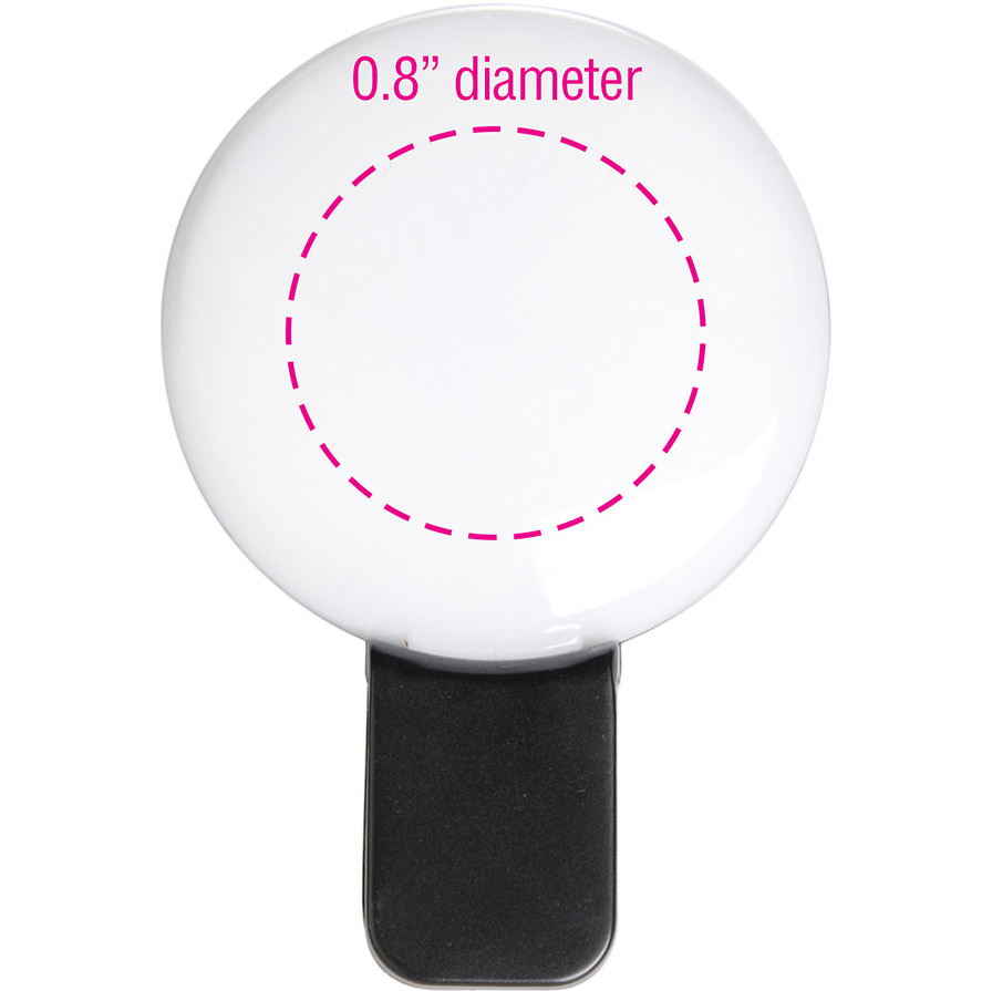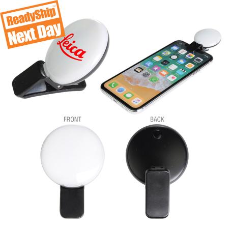 Turn your smartphone, tablet or laptop into an on-the-go photo/video studio with the Pixie Light. This selfie light is an easy way to get the perfect, glowing selfie or simply to perfect the lighting during your next ZOOM meeting. Features 3 levels of brightness, a sturdy clip attachment, and a ring of lights on the outer edge, allowing for imprinting on the center of the light itself. Material: Plastic. Price includes full colour imprint.
