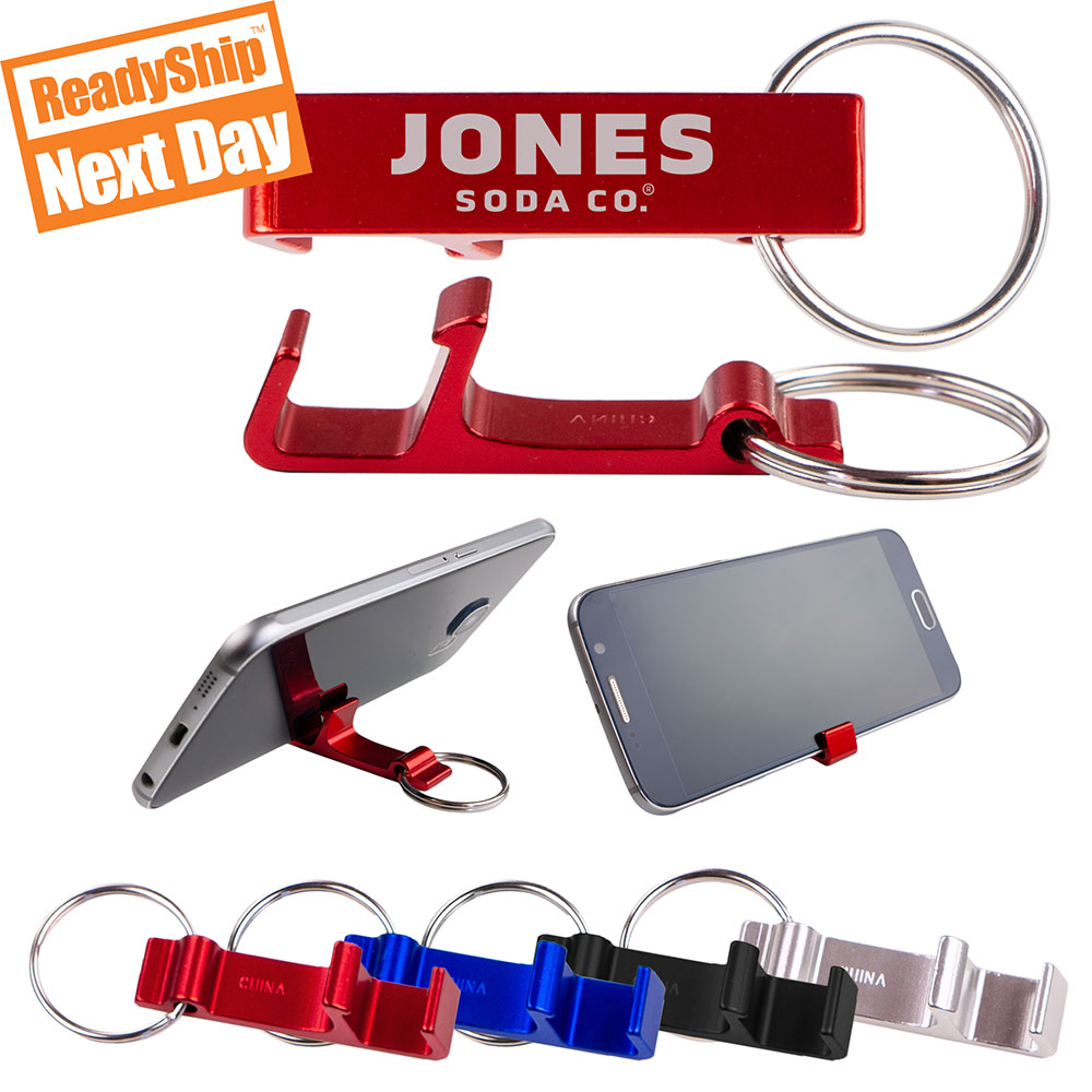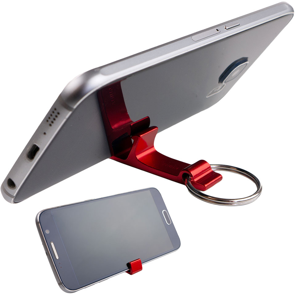 What's more handy than a bottle opener? The iPopStand with its triple functionality as a bottle opener, keyring, and smartphone stand in one. Open a bottle of suds and prop your phone up to watch cat videos... we won't tell. It's the perfect device to satisfy your refreshment and entertainment needs in one. Made from durable, anodized aluminum in 4 great colors: Red, Blue, Black and Silver. Material: Aluminum and Zinc Alloy. Price includes laser engraving.