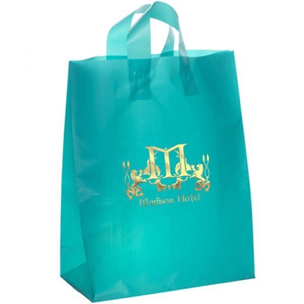 Get a high-impact retail look with this colorful hi-density 3.5 frosted color plastic bag. Features fused loop handles and cardboard bottom insert. Price includes foil stamp.
