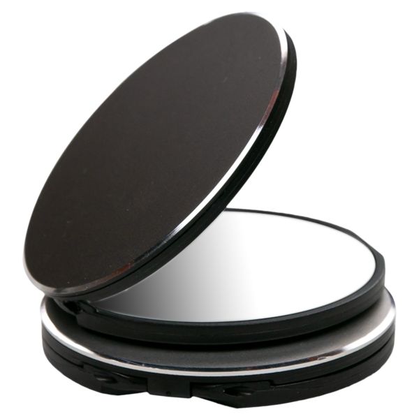 Made with a beautiful beveled edge aluminum cover, the iShine mirror adheres to the back of your mobile device with strong adhesive and can be used as a phone stand when open. When not in use, the compact-style mirror secures shut with a small magnet closure and features a generous engraving area for a high-end look.