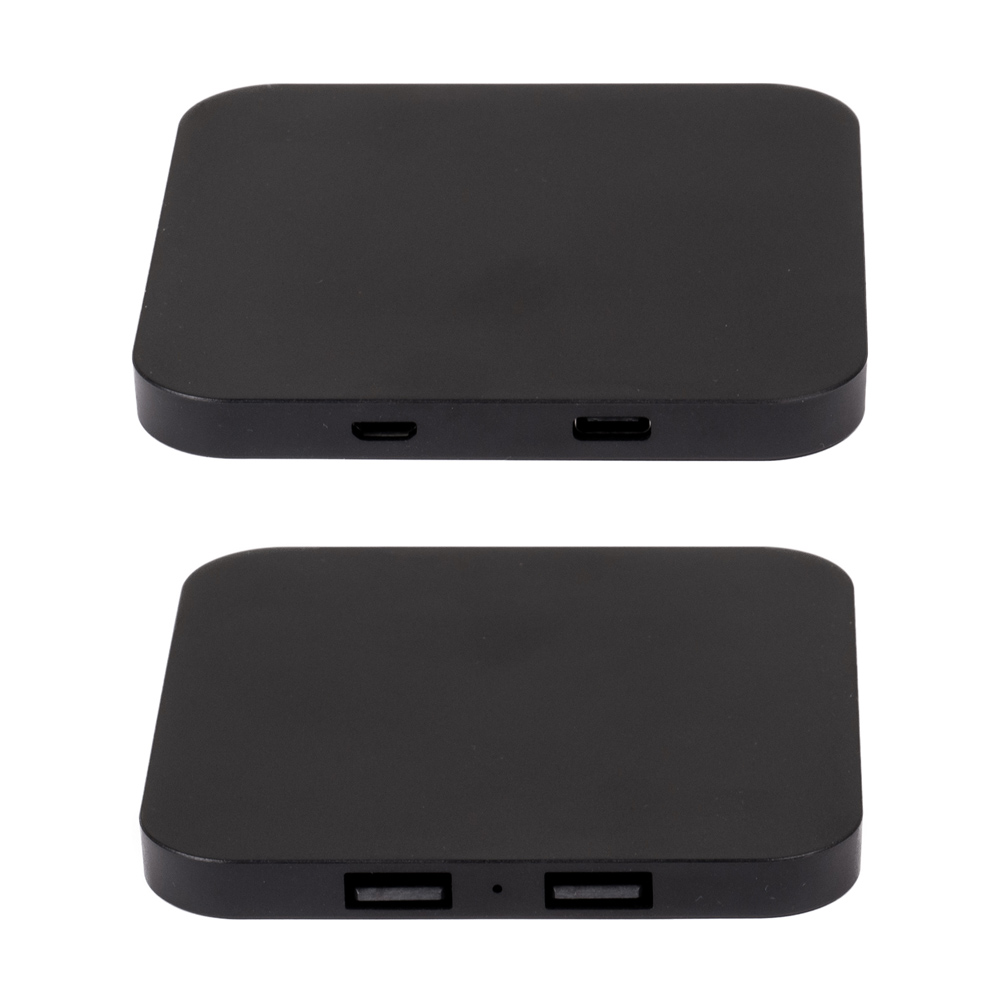The Qi Quad is the ultimate charging hub. A 10W wireless charger that can do it all. Charge up to three devices at once with the Qi capabilities and two built-in USB ports. To use, connect the Qi Quad to a power source utilizing either the USB Type-C or Micro USB input ports. Place your Qi-enabled smartphone on the Qi Quad and start charging! Charge two additional devices via the USB ports. Perfect for those with the latest smartphones, and those who have yet to upgrade. Material: Plastic. Price includes one color, one location imprint.
