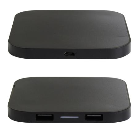 The modern, low-profile design of the iSquare Plus 5W Wireless Combo Charger makes this an ideal tech product for a variety of situations. Charge up to 3 devices at once with 2 built-in USB ports.