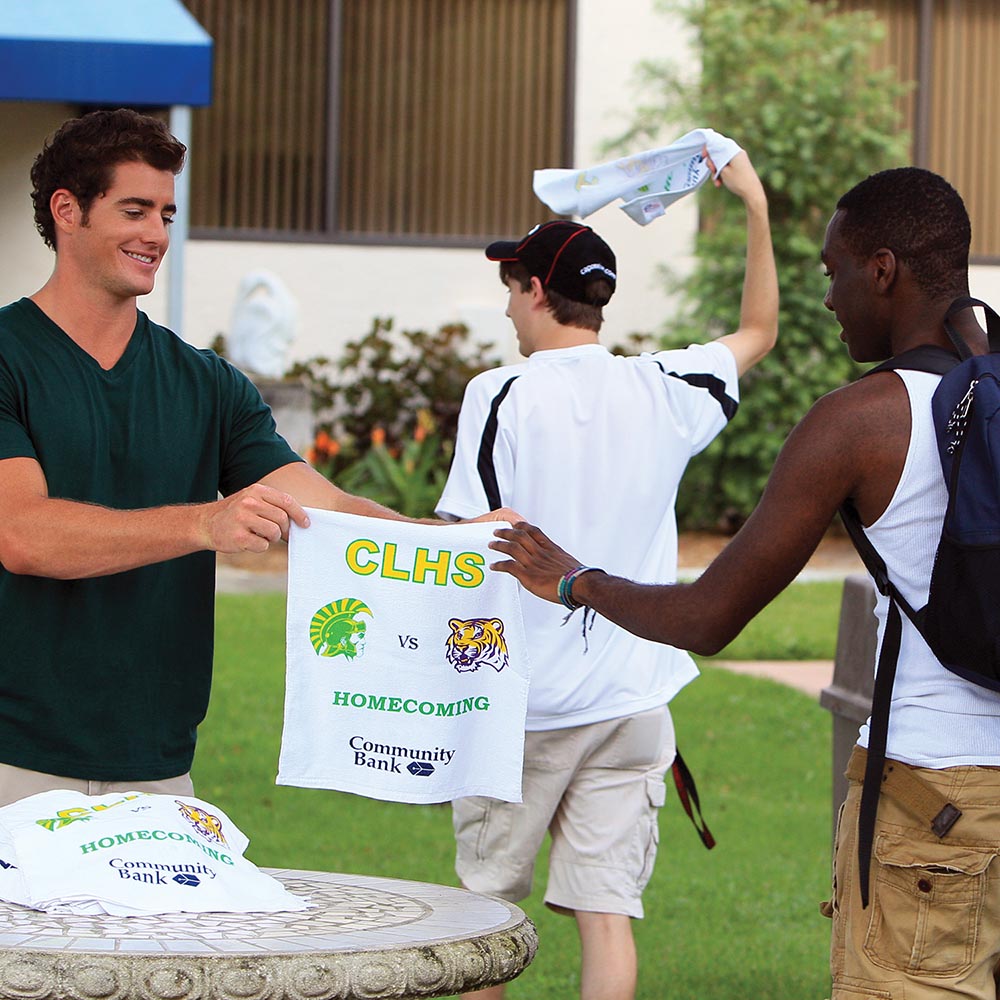 Watch a high-profile sporting event and you’re likely to see rally towels being twirled by frenzied fans. Rally towels have become a favorite (and highly visible) way to promote sports teams, as well as big games and other sporting events. While ideal for use with sports, rally towels are also well suited to build corporate team spirit or promoting a brand in a wide range of industries. Personal milestones such as weddings, birthdays or reunions are also perfect occasions for rally towels. With so many styles of all-cotton rally towels available, you’ll be sure to find the perfect fit for your next promotional project.