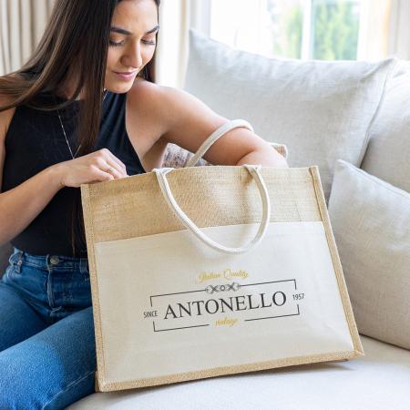 Model: 30111 Julia Jute Tote Bag View Imprint Area Product Description Made of Combo: 10 Oz. Cotton Canvas And Laminated Jute, A Natural Vegetable Fiber. Large Open Main Compartment. 16" Padded Cotton Rope Handles. 4 3/4" Gusset. Front Slip Pocket. Spot Clean/Air Dry. Price includes one colour, one location imprint. Size: 14"h x 18"w x 4.75"d Imprint Area: 6"h x 11"w Request A Virtual Proof Choose Quantity View Price Breaks Quantity Price 100 $15.67 250 $14.69 500 $13.71 1000 $13.22 2500 $12.73 Enter quantity or drag slider. Minimum quantity is 100. Quantity: Price Each $15.67 Setup Charge: $65.00 Subtotal $1,632.00 Savings: $ over minimum qty pricing Choose Your Quantity Quantity Price 100 $15.67 250 $14.69 500 $13.71 1000 $13.22 2500 $12.73 Standard Production Time: 7 business days Select Delivery Date Enter Postal Code Apply Loading... Choose a Shipping Method -- Loading Shipping Prices -- Customize it! Upload Your Art Now Or Send it Later. Select Imprint Colour(s) Back to Edit Product Color And Quantity Where on the item should we print your design? 11" x 6" Available print design areas 11" x 6" What imprint Colour(s) would you like? (Maximum # of Imprint Colors: 1) Black Gray White Burgundy Royal Blue Navy Blue Tan Medium Brown Sienna Brown Grape Juice Violet Purple Lilac Carolina Blue Teal Kelly Green Forest Green Olive Green Lemon Yellow Golden Yellow Vegas Gold Citris Orange True Orange Burnt Orange Bright Red Scarlet Red Hot Pink Ribbon Pink Pastel Pink Black Gray White Burgundy Royal Blue Navy Blue Tan Medium Brown Sienna Brown Grape Juice Violet Purple Lilac Carolina Blue Teal Kelly Green Forest Green Olive Green Lemon Yellow Golden Yellow Vegas Gold Citris Orange True Orange Burnt Orange Bright Red Scarlet Red Hot Pink Ribbon Pink Pastel Pink Quantity: 100 Add Your Artwork Add Artwork Add Now Send After Checkout Don’t have artwork? That’s ok! Artwork is not required to start a job. Simply skip this step and email us artwork later (info@rushimprint.ca). If you need assistance with your art, our designers can help with that too! Will I be able to approve my design before it goes into print? Yes! You will receive a digital mock-up of your artwork on this item within a few hours of placing your order. We will send your order into production only after you approve the mock-up. Only Image Aa Only Text Aa Text/Image Designer Contact Us Enter Your Text Choose file Uploading logo. Please wait... Personalize your design by adding text and customizing its shape with a curve. Upload your logo to give it a professional touch, and combine these elements to create a one-of-a-kind design that’s uniquely yours. Open Product Designer Don’t have artwork? That’s ok! Artwork is not required to start a job. Simply skip this step and email us artwork later. If you need assistance with your art, our designers can help with that too! Will I be able to approve my design before it goes into print? Yes! You will receive a digital mock-up of your artwork on this item within a few hours of placing your order. We will send your order into production only after you approve the mock-up. Free art proof will be emailed with every order within one business day Total (loading...) qty x Set Up Shipping Cost Rush Charge Custom Fields Hazmat Fee Estimate arrival Savings Add to Cart Updating Price...