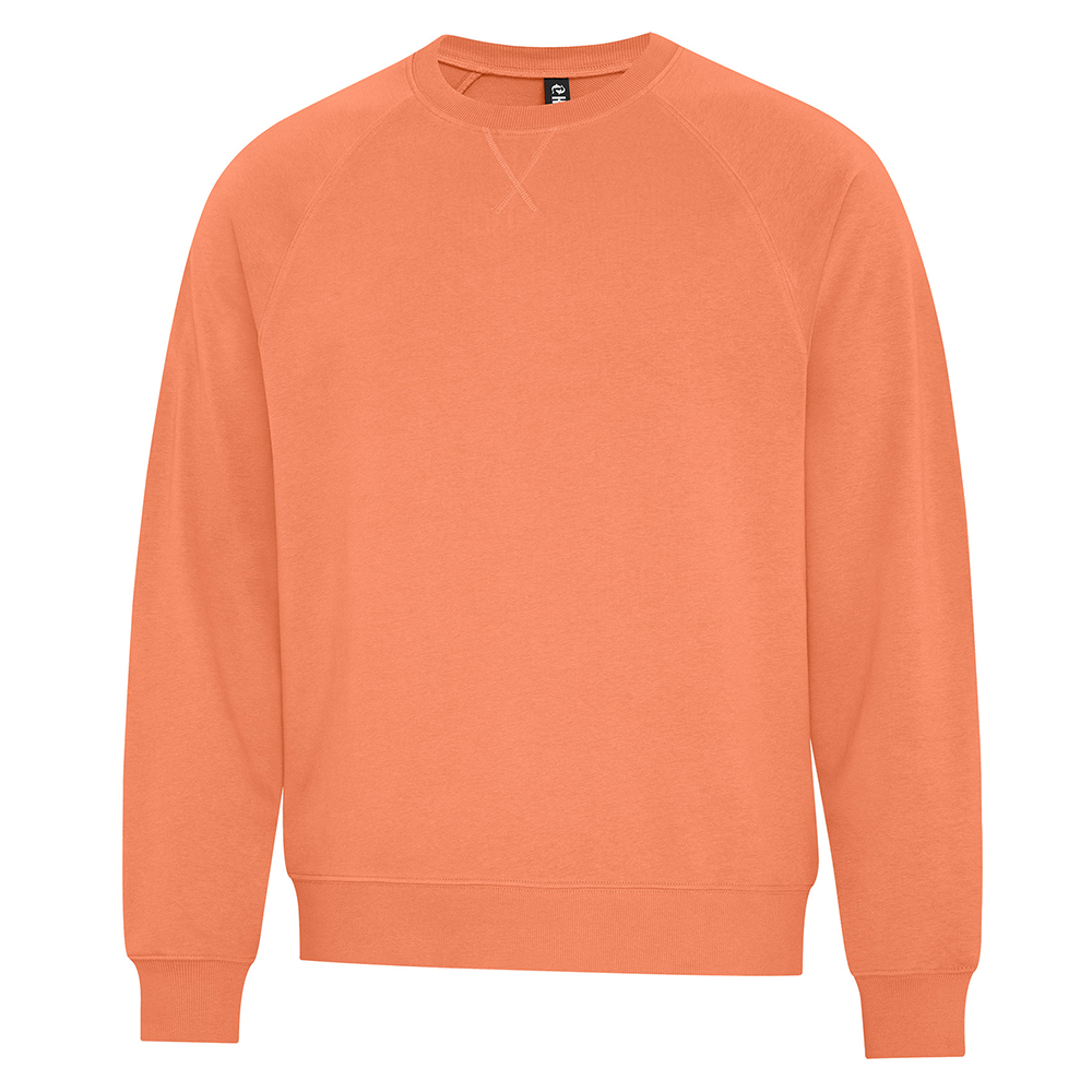 Made for effortless layering, this crewneck brings quiet confidence with a clean silhouette and breathable, lightweight loopback interior for all-season wear. The tightly woven, cotton-faced French Terry creates a dense, "hair-free" surface for premium decoration and elevated styling. 12.8-oz, 76/24 cotton/polyester French Terry. Combed and RING SPUN cotton. 100% cotton-face fleece. 3-end fleece. Flatlock triangle stitch detail at neckline. Tear away label for private branding. Raglan sleeves. 2x2 rib knit cuffs and waistband. Double needle cover stitch at bottom hem. Superior printing surface. Modern fit. *60/40 cotton/polyester. OEKO-TEX