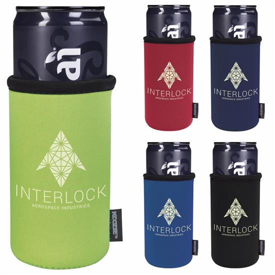 Perfect for any indoor or outdoor event. This new, slimmer size allows you to fit most 8 oz. and 12 oz. slim cans. Neoprene and polyester material. Fits most 8 oz. and 12 oz. slim cans. Please reference 46206C for heat transfer or PrismMaxTM imprint method. PRODUCT MATERIALS: Polyester. Price includes one color, one location imprint.
