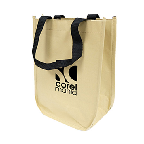 50% recycled laminated Kraft paper backed with non woven laminated Polypropylene. The outside looks like a paper bag. Classic paper bag look in a reusable staple. Exterior is made with 50% recycled materials. Two durable webbed carry handles. Price includes one colour, one location imprint.