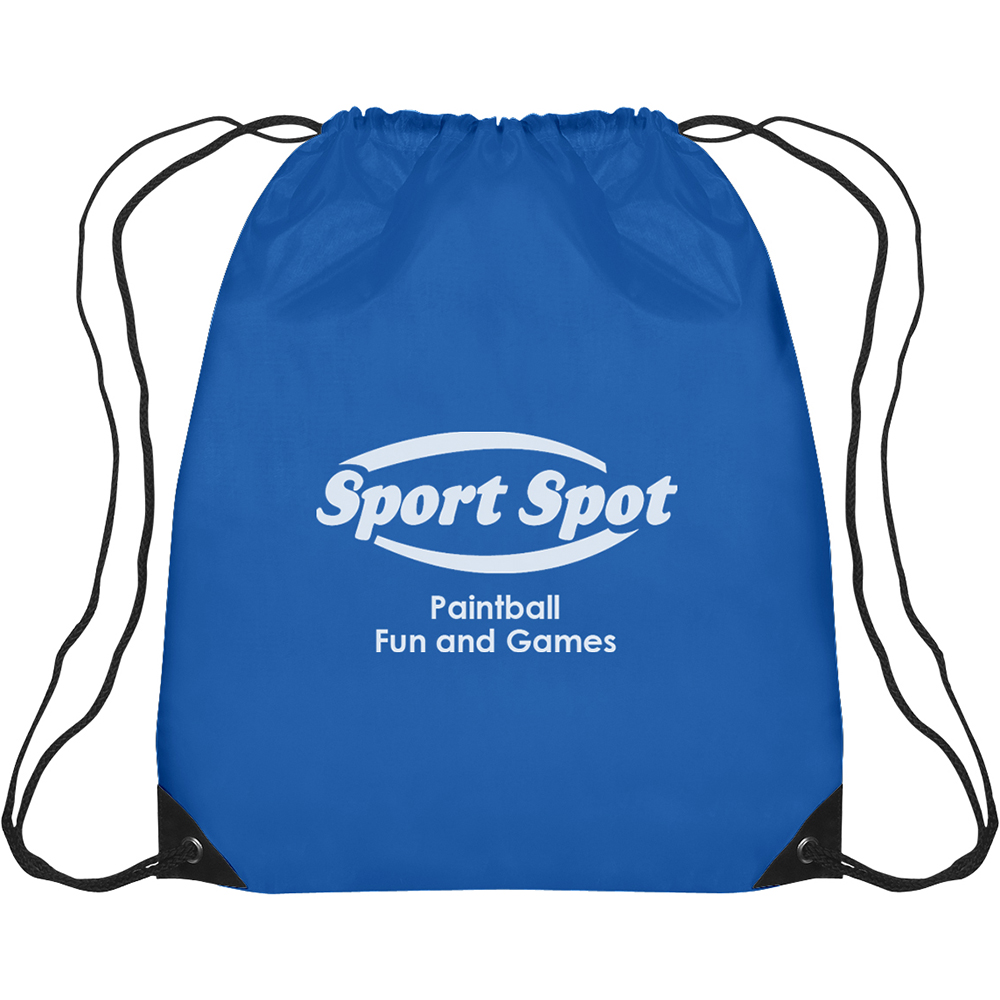 Made Of 210D Polyester With Contrasting Simulated Leather Reinforcement Black Trim At The Corners. Reinforced Eyelets. Drawstring Closure. Spot Clean/Air Dry. Price includes one colour, one location imprint.