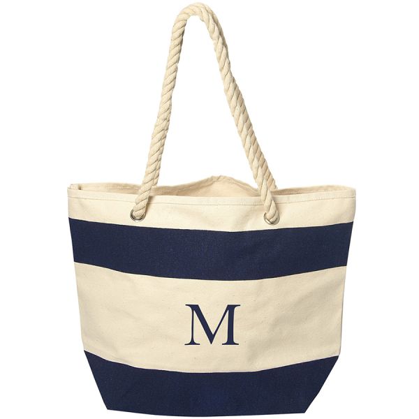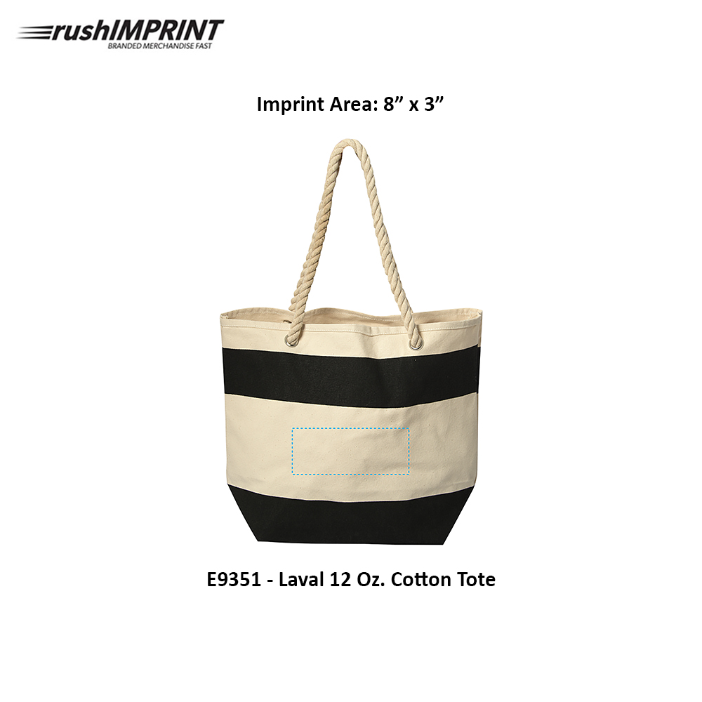 12 ounce Cotton. Cotton rope handles. Coloured/natural stripe design. Metal grommets. Great for day trips, overnight and trips to the grocery store.