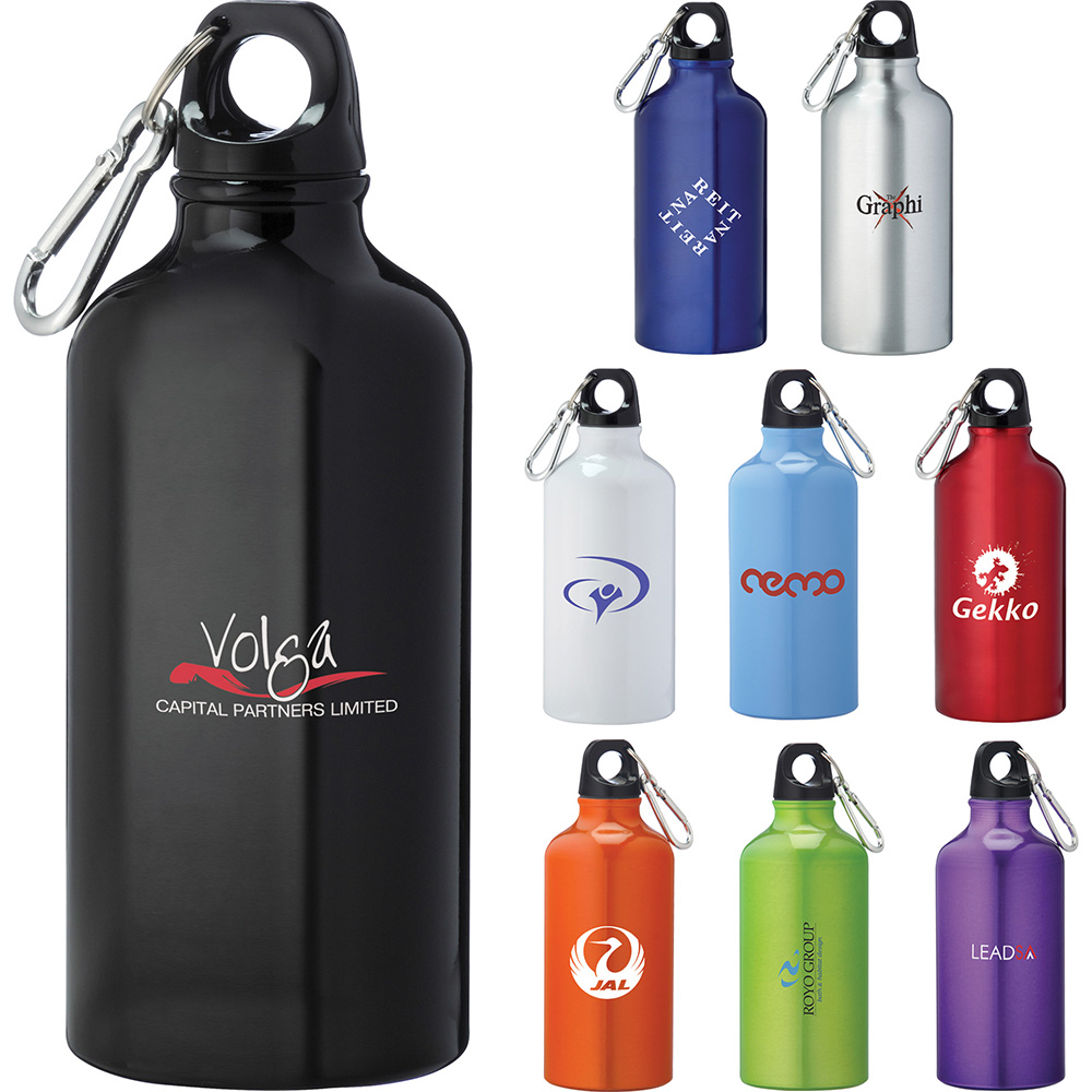 The Li'l Shorty 17oz Aluminum Sports Bottle is recyclable and features single-wall construction a twist-on lid and comes with a silver 5mm mini-carabiner attached to the lid. Please note that multi-color imprint location run charges apply even if the artwork is same on both sides. Hand wash only and follow any included care guidelines. Material: BPA-free Aluminum. Price includes one color, one location imprint.