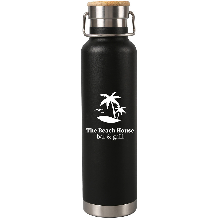 Meet the Loki stainless steel bottle—a fusion of style and functionality. Its double-walled, copper-lined insulation keeps beverages at the perfect temperature, while the bamboo lid and powder-coated finish add a touch of sophistication. The top carry handle ensures easy portability, and with a generous 650 ml. (22 fl. oz.) capacity, it's the perfect companion for your hydration needs. Delivered in an Ugly Beautiful kraft paper box, this bottle isn't just a vessel; it's a statement of elegance.
