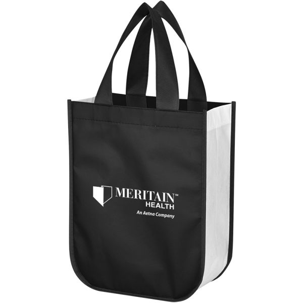 Made Of 80 Gram Laminated Non-Woven, Coated Water-Resistant Polypropylene. 4 1/2" Gusset. Reusable. 13 1/2" Handles. Spot Clean/Air Dry. Price includes one colour, one location imprint.