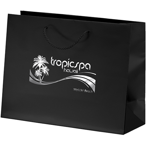 Achieve a refined high-end look for your gift packaging, thanks to the subtle finish on our 157 GSM premium-weight matte-laminated bags. Includes matching macramé handles, reinforced fold-over top, and cardboard bottom insert. Price includes foil stamp.
