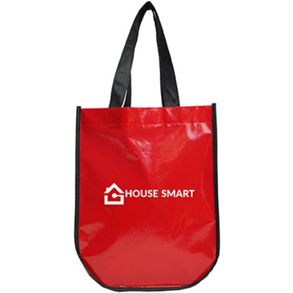 75 gram non woven and 35 gram laminated non woven polypropylene. Non woven (laminated) gusset with plaid pattern. Non woven (non-laminated) handles. Handy mini sized tote bag for the beach, a night out, or as a gift bag. Same size and styling as TO4511. Price includes one color, one location imprint.